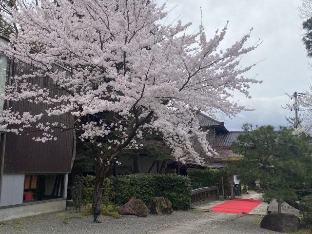 歴史ある邸宅に、季節はちょうど満開の散りゆく桜。