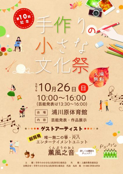 10月26日(日)新潟県南魚沼市 「第10回記念 手作りの小さな文化祭」に出演します!